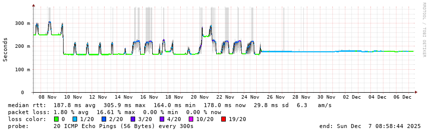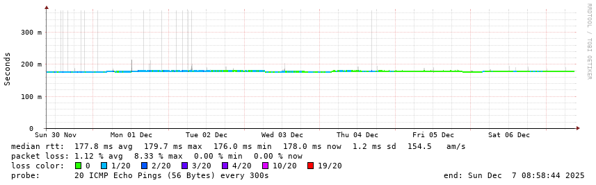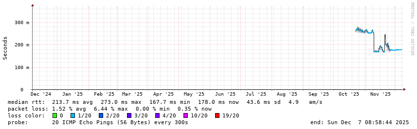 Running on SmokePing-2.7.3 by Tobi Oetiker and Niko Tyni. Maintained by IP Volume NOC