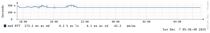 Running on SmokePing-2.7.3 by Tobi Oetiker and Niko Tyni. Maintained by IP Volume NOC
