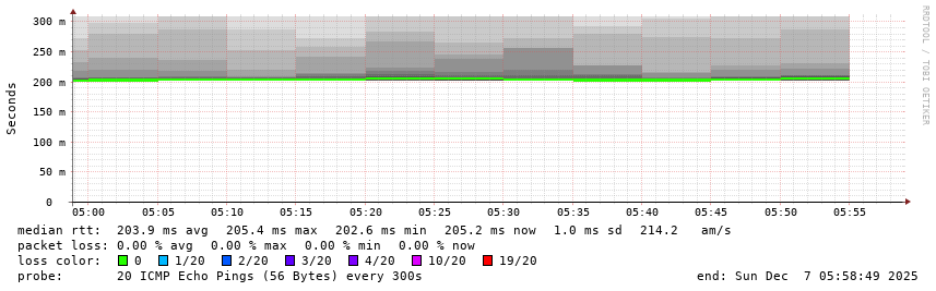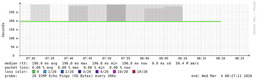 Running on SmokePing-2.7.3 by Tobi Oetiker and Niko Tyni. Maintained by IP Volume NOC