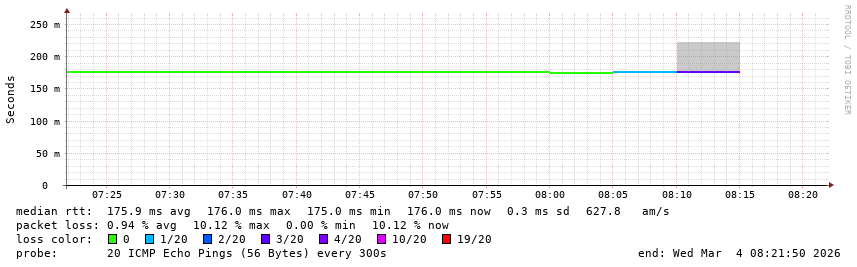 Running on SmokePing-2.7.3 by Tobi Oetiker and Niko Tyni. Maintained by IP Volume NOC
